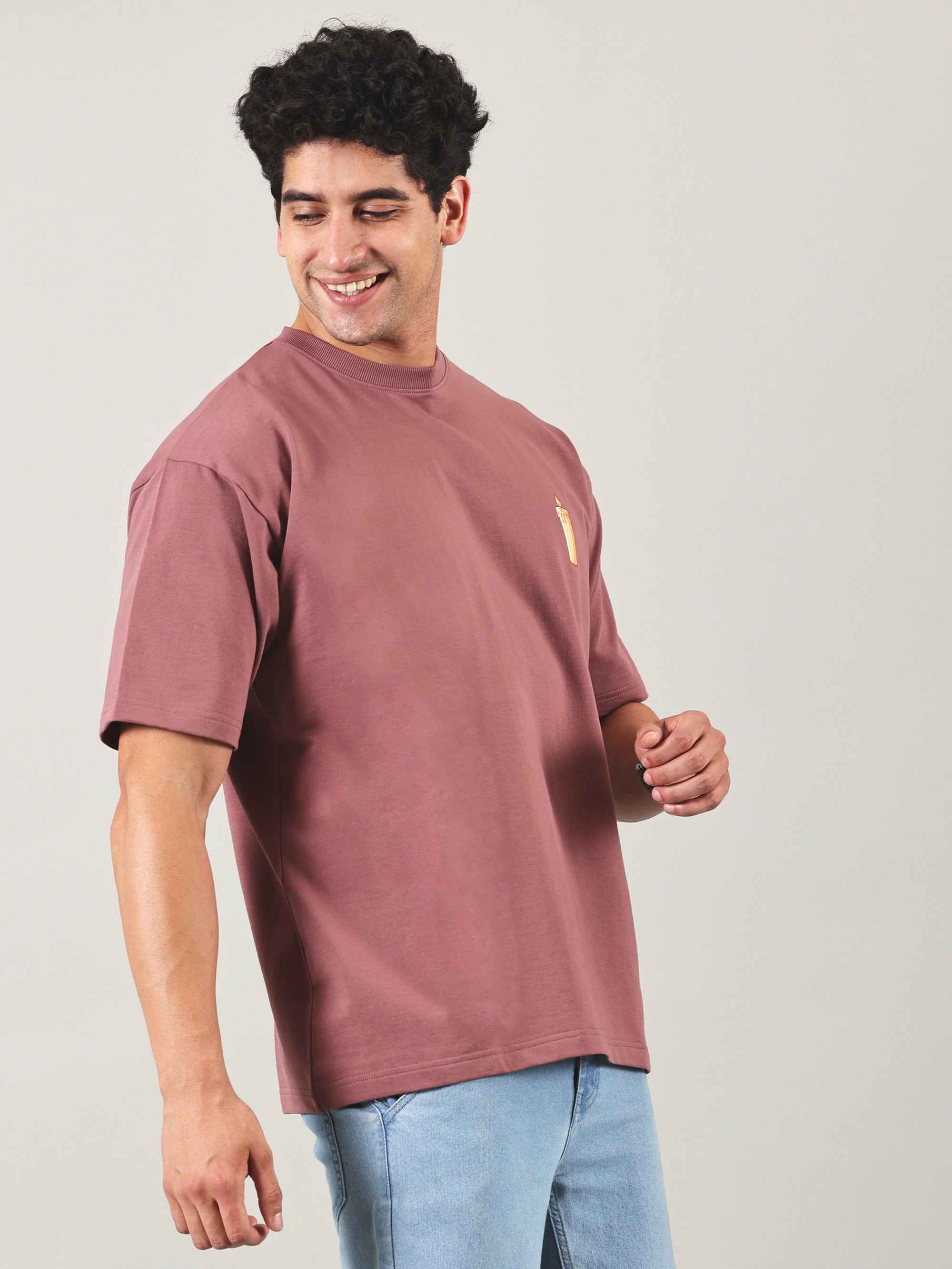 Men’s Premium Oversized T-Shirt | French Terry 100% Cotton | Lab-Tested, No Fade & No Shrink | Rose Brown